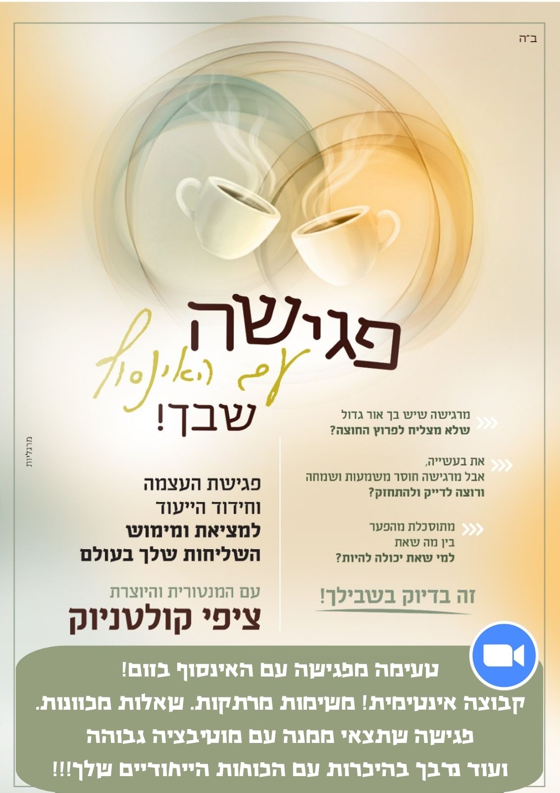הפגישה לא תוקלט. היא מיועדת רק למי שפנויה להכנס בערב הזה ולהשתתף!